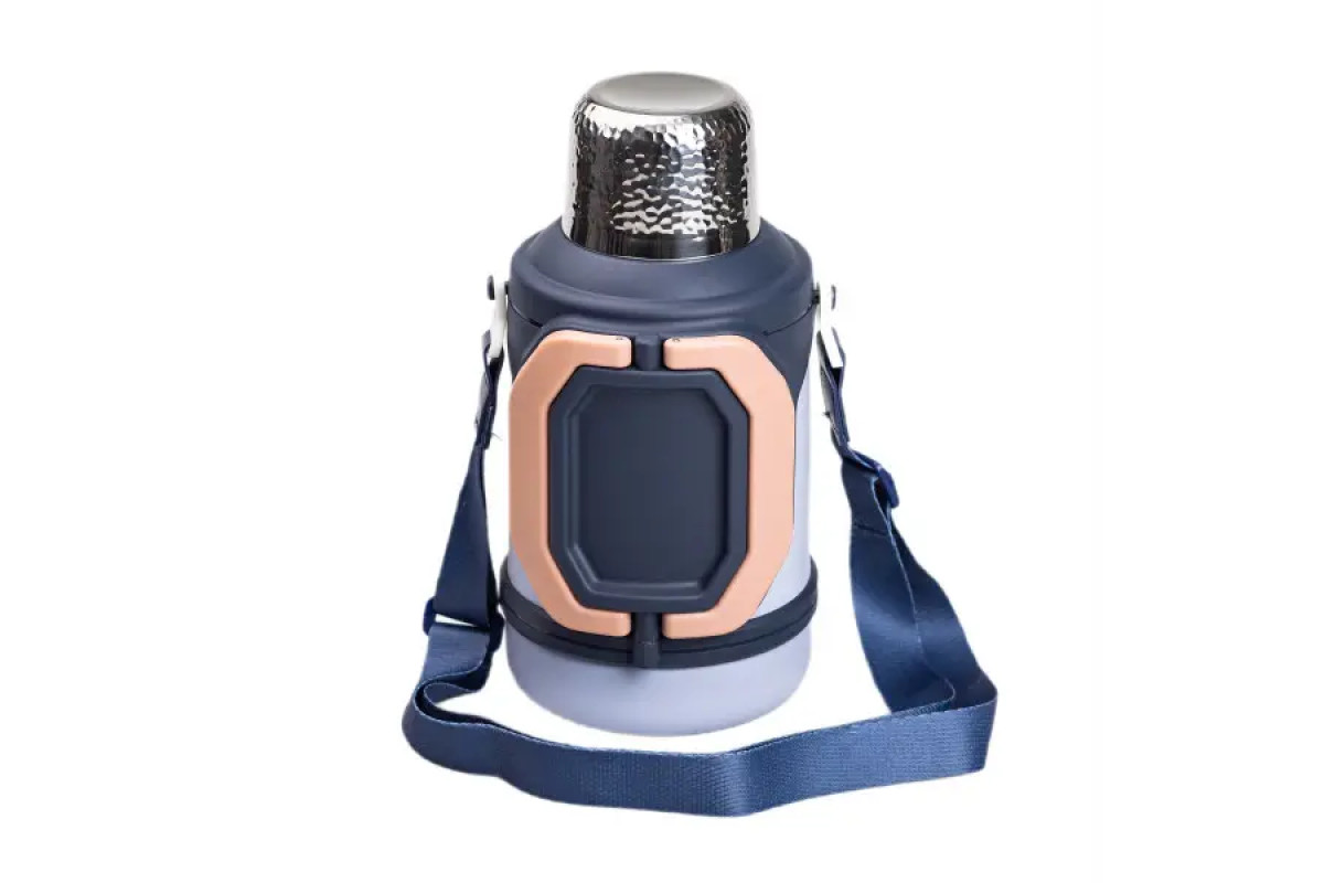 Термос Yiwu HP-14-21BL туристичний Vacuum Cup 1,5 л — надійний вибір для мандрівок і довгих прогулянок на природі. Завдяки фліп-кришці з нього зручно пити, а складані ручки полегшують транспортування та використання, особливо в умовах походу.