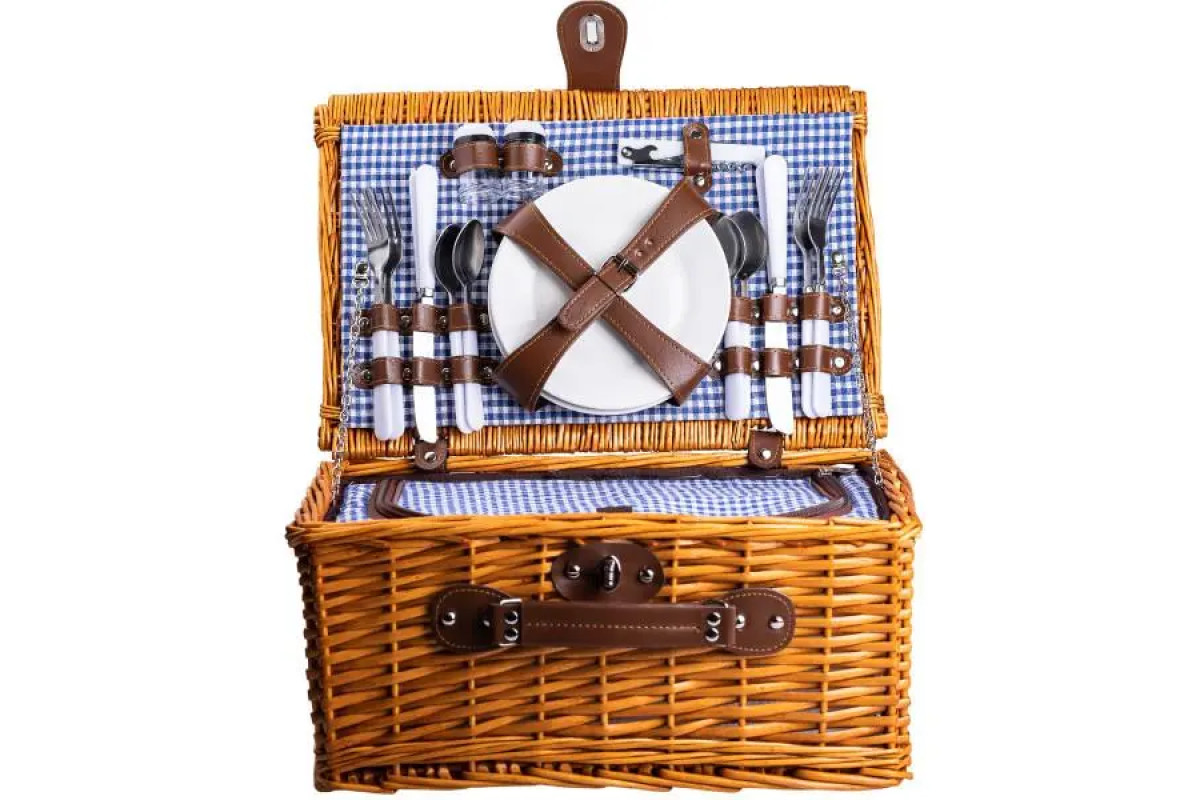 Кошик для пікніка Yiwu на 4 персони – відмінне рішення для відпочинку на природі. Кошик виготовлений з екологічних матеріалів, має досить містку сумку-холодильник і повністю укомплектований необхідним для пікніка посудом, який фіксується ременями з екошкіри: