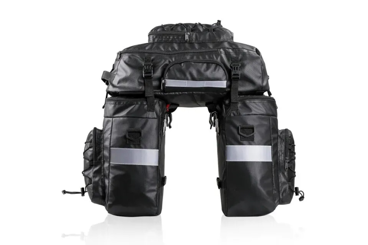 Велобаул Rhinowalk 3в1 – це багатофункціональна сумка на багажник велосипеда, призначена для туристичних поїздок, походів та інших подорожей, в які потрібно брати потрібні речі. У комплектацію входять 2 місткі бічні сумки, що трансформуються в наплічні та 1 великий рюкзак. Велобаул Rhinowalk 3в1 виготовлений із поліефірного матеріалу з водонепроникним шаром на кожній стороні. Матеріал досить термостійкий та зносостійкий, з посиленим захистом від промокання.