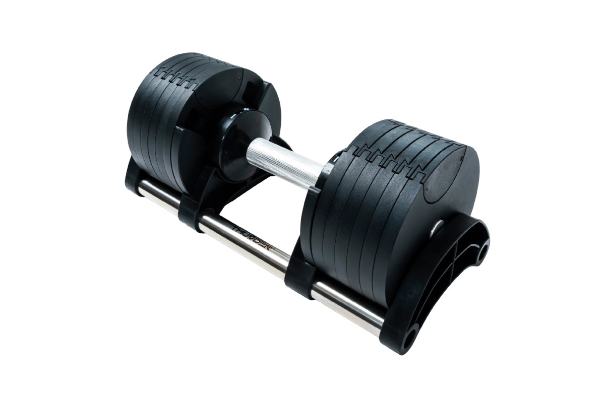 - Запатентований механізм регулювання дозволяє миттєво змінювати вагу. Просто покладіть гантель на основу, покрутіть ручку і все готово - навантаження змінено за лічені секунди! Система фіксації забезпечує повну безпеку під час використання.