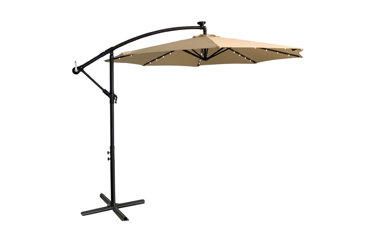 Основний шар парасолі виконано з поліестеру, який зустрічається у звичайних побутових парасольках, проте має підвищену щільність. Краплини води стікатимуть без промокань, Пекуче сонячне проміння залишиться на зовнішній стороні, а шар мокрого снігу на поверхні не зможе завдати суттєвої шкоди. 32 LED лампи, що живляться від сонячної панелі одразу створюють бажану атмосферу. Якщо потреба у парасолі наразі зникла, належне тимчасове зберігання допоможе підтримати спеціальний чохол, що постачається в комплекті.