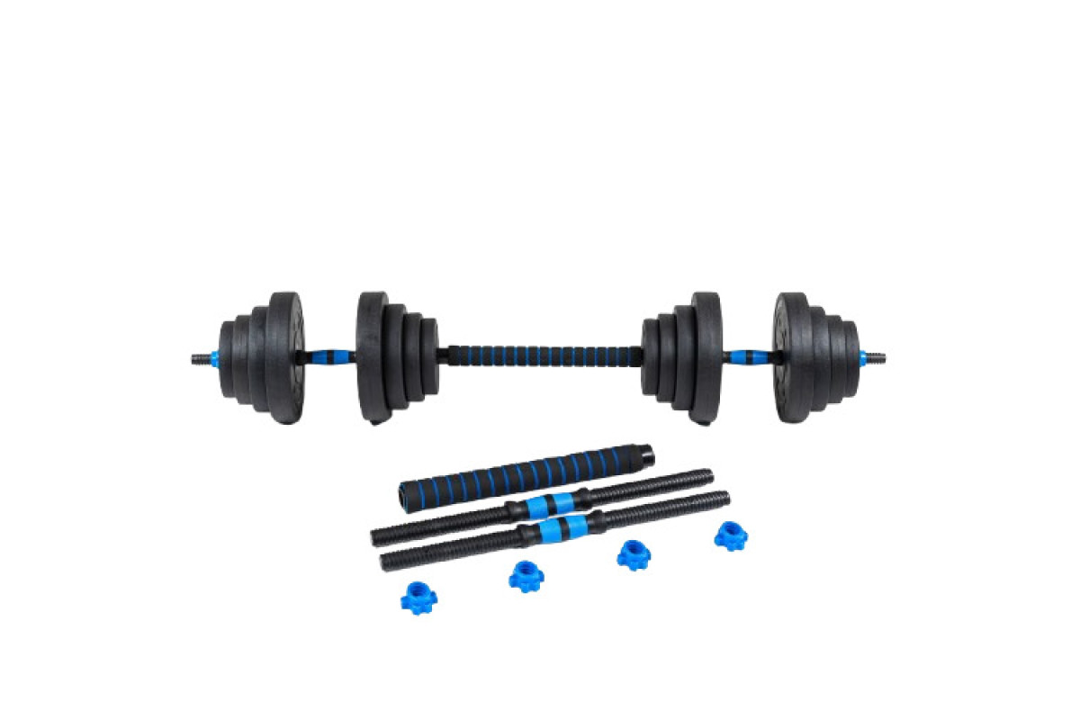 Завдяки спеціальному з'єднувачу з пінною рукояткою, ви можете з'єднати дві штанги гантелей в одну штангу довжиною 97 см. Таке рішення дозволяє проводити різноманітні тренування без необхідності купувати додаткове обладнання.