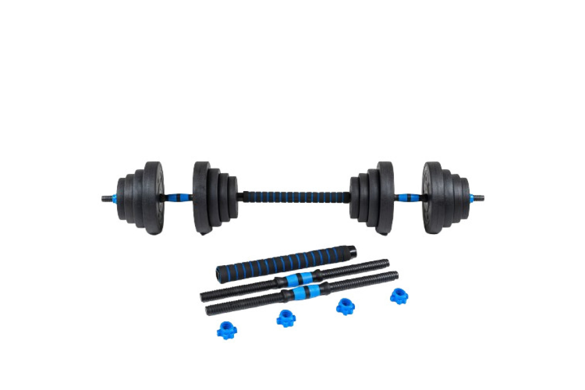Завдяки спеціальному з'єднувачу з піни, ви можете з'єднати дві штанги гантелей в одну штангу довжиною 112 см. Таке рішення дозволяє проводити різноманітні тренування без необхідності купувати додаткове обладнання.