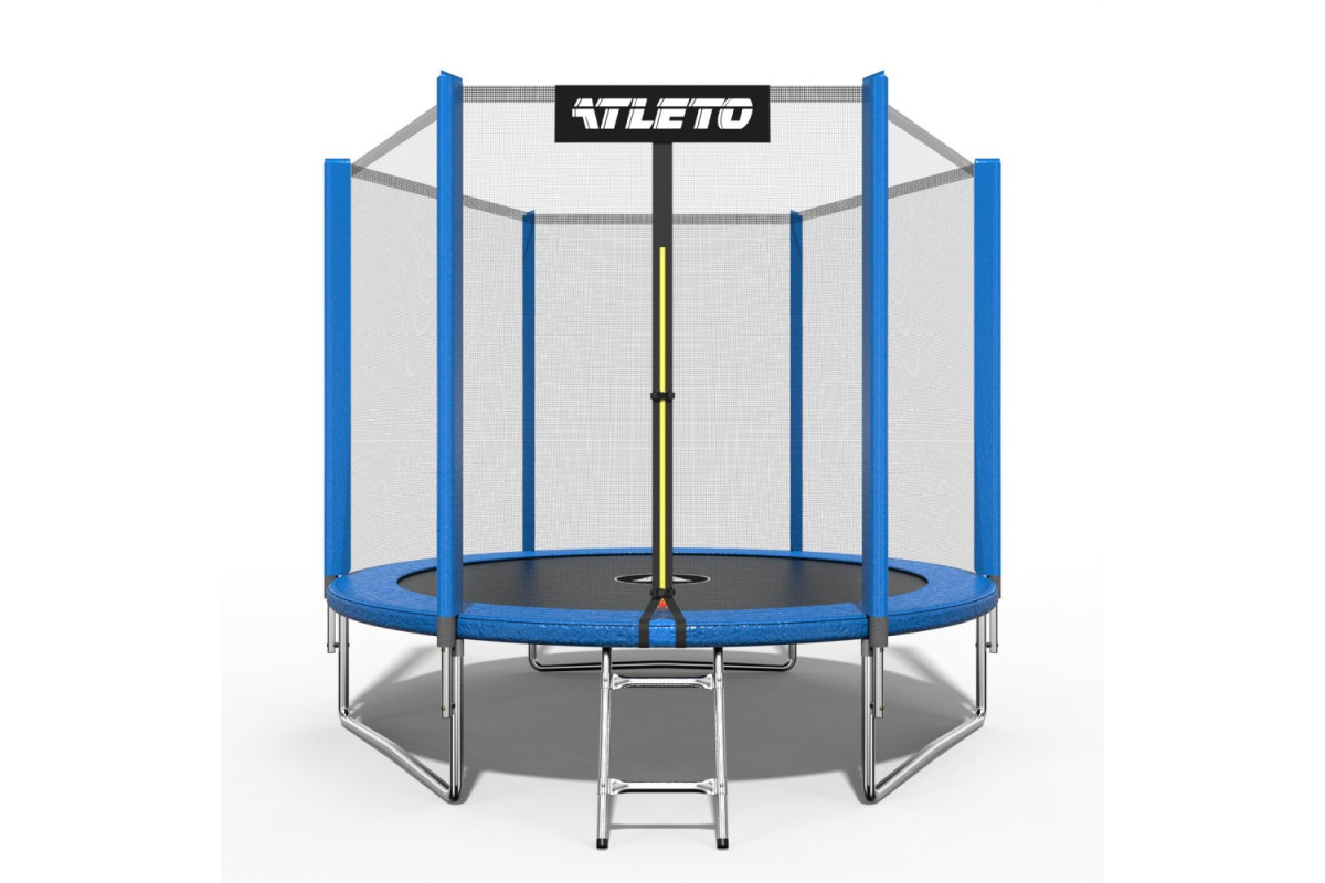Батут Atleto виготовлений з високоякісних матеріалів (стійких до УФ). Оснащений 36 оцинкованими пружинами, закритими спеціальним прокладним матеріалом. Поверхня оточена захисною сіткою на блискавці.