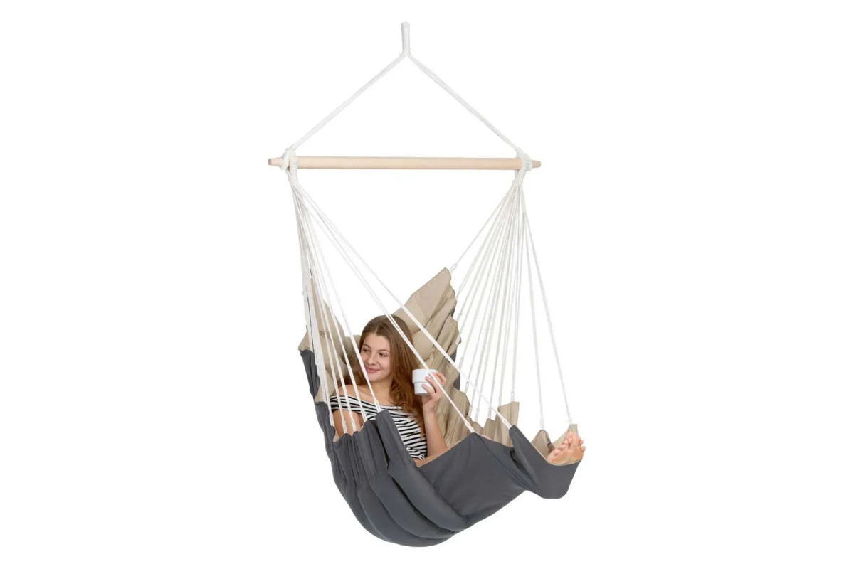 В підвісному кріслі Amazonas XXL California зручно відпочити вдома, подрімати в обідню перерву чи розслабитися на природі після поїздки на авто.