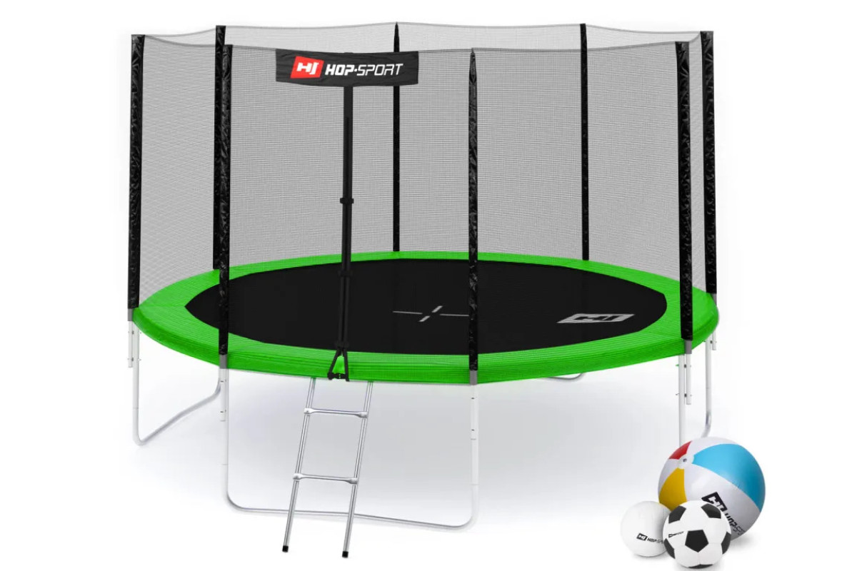 Батут Hop-Sport з зовнішньою сіткою 12 футів 366 см зелений