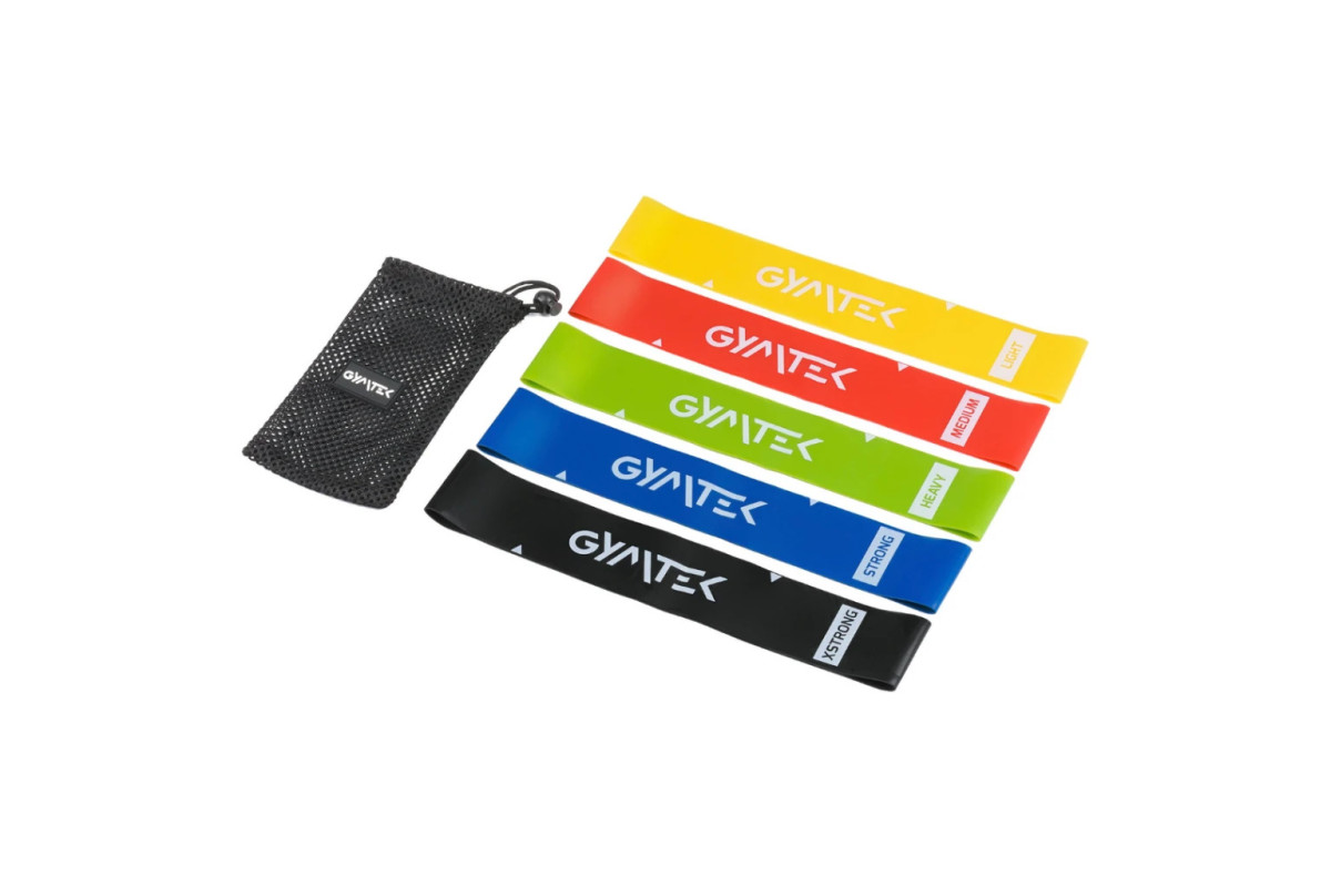 Принцип опору стрічок полягає в тому, що чим більше ви їх розтягує, тим більше опору вони створюють. Завдяки цьому ви можете легко налаштувати навантаження на ту стадію, на якій ви зараз перебуваєте. Кожна з п'яти гумок, включених в набір Gymtek, генерує різний діапазон навантаження, щоб використовувати їх в різних видах тренувань - від силових тренувань, фітнесу до реабілітаційних вправ.