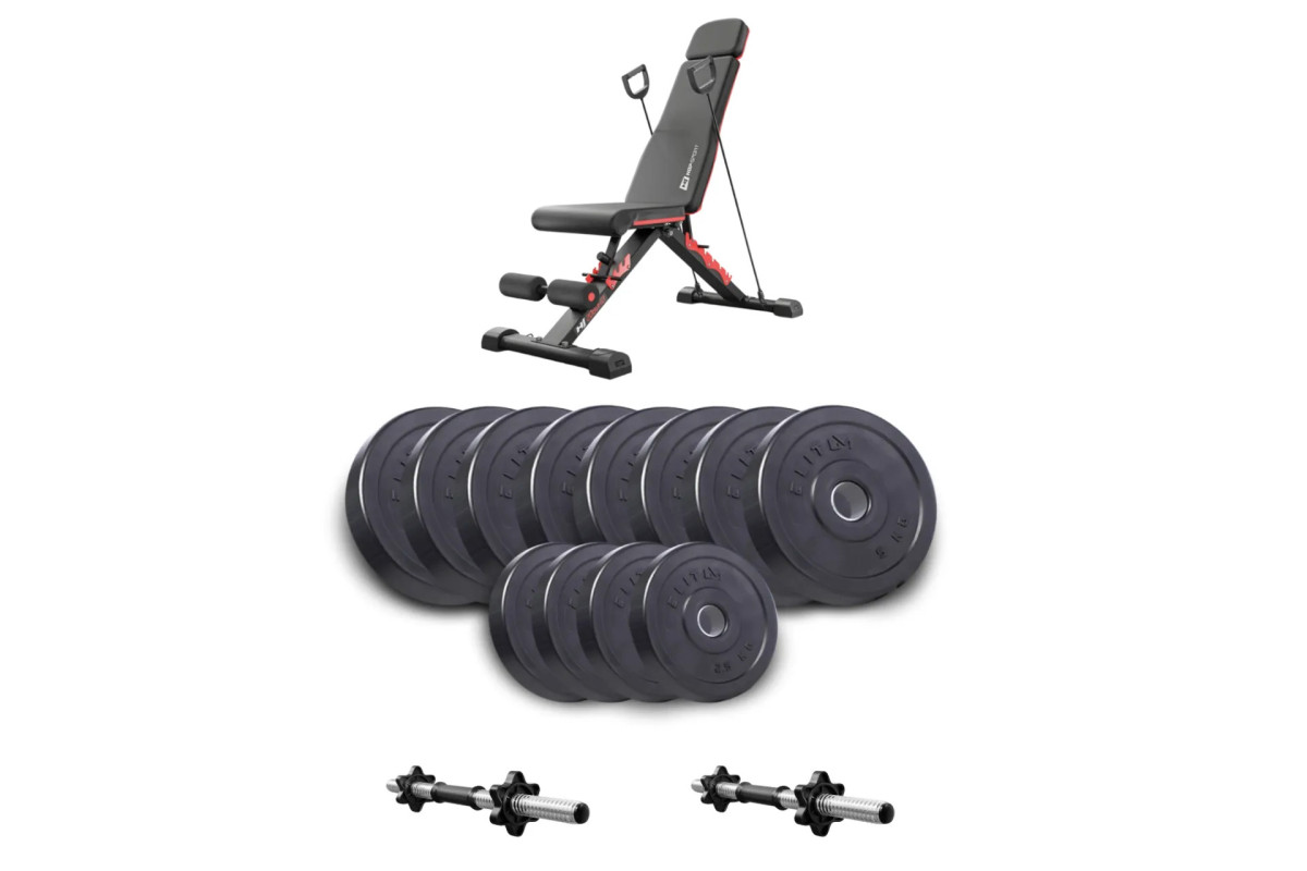 Гантелі Elitum, виготовлені з міцного матеріалу, легко витримують великі навантаження до 60 кг, а лава з 8 регульованими положеннями спинки дозволяє адаптувати її під будь-які вправи. Всі матеріали в наборі - найвищої якості, що гарантує їхню надійність і тривалий термін служби.