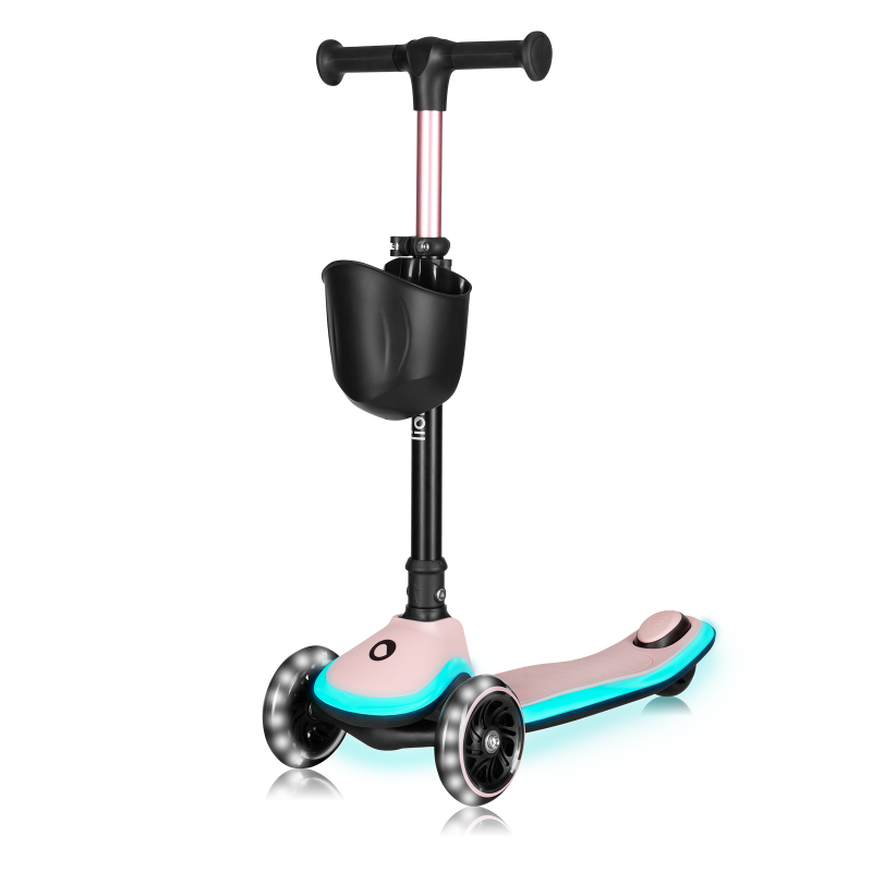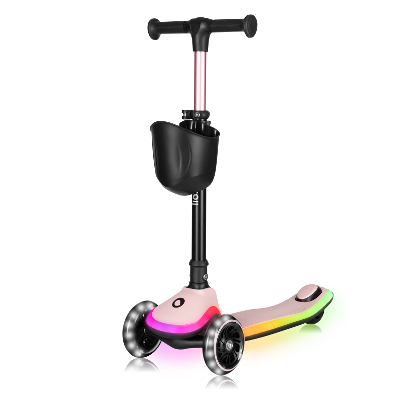 Передні колеса світяться білим кольором, що не лише виглядає вражаюче, але й забезпечує видимість дитини — світло активується під час руху і не потребує батарейок!