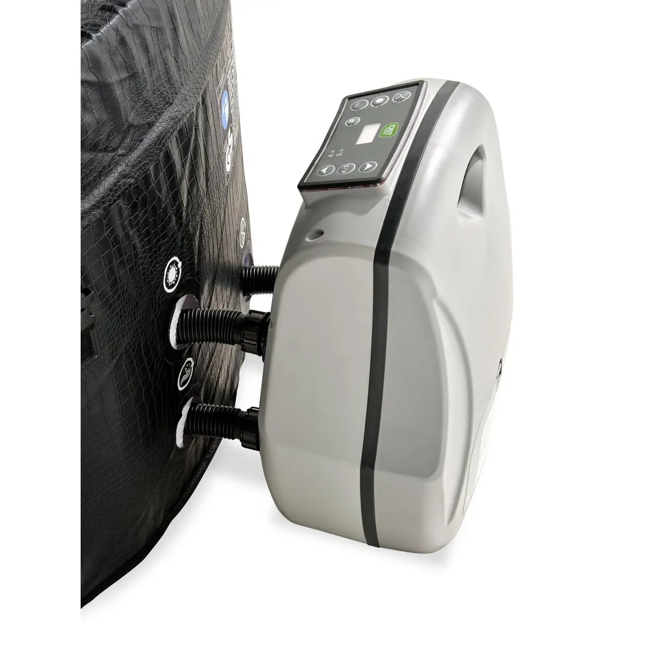 Такий спа басейн стандартно поставляється з фільтруючим насосом, який і нагріває воду, килимком для підлоги і надувною кришкою з ізолюючим накриттям.
