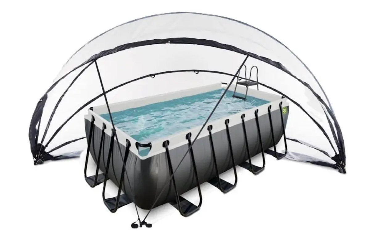 Басейн каркасний прямокутний EXIT з наземним куполом 400x200x122см "Чорна шкіра" з нагрівом води