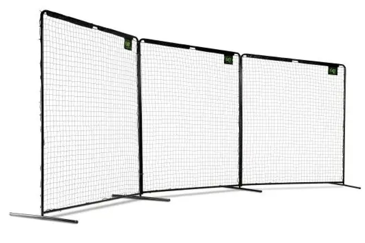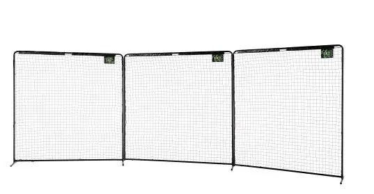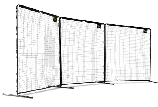 Сітка для м'ячів складається з трьох чорних рамок, кожна розміром 300 x 300 см, які можна прикріплювати одну до одної на висоті до 6 метрів і ширині до 3 метрів. Рама оцинкована і має порошкове покриття, що забезпечує довгий термін служби і красивий зовнішній вигляд. Горизонтальні ніжки, закріплені за допомогою кілочків і заземляючого анкера, гарантують, що спортивна сітка залишиться на місці навіть при найсильнішому ударі по м'ячу.