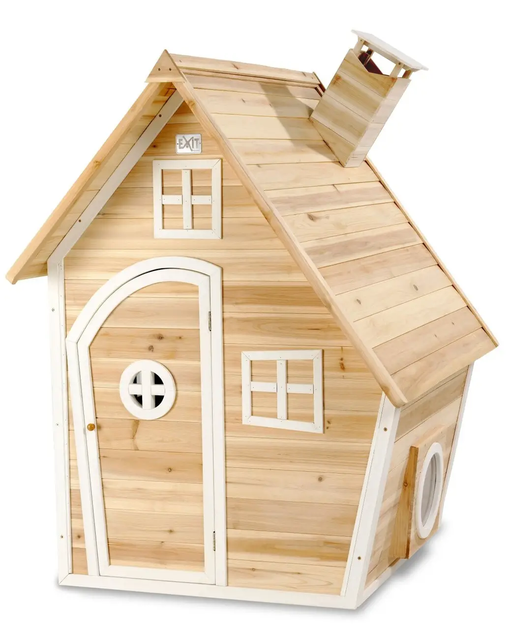 Створіть затишний простір для дитячих ігор з дерев'яним будиночком EXIT Fantasia 100! Натуральний дизайн і продумані деталі, такі як димар, похилі перила та грайливі форми рам, роблять його справжньою мрією для малюків. Компактний і стійкий, він ідеально підходить навіть для невеликої ділянки.