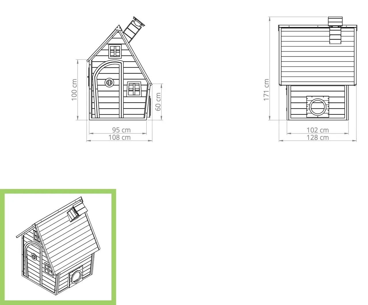 Будиночок виготовлений із сертифікованої деревини кипариса (FSC 100%), яка не тріскається та стійка до вологи. Завдяки цьому матеріалу будиночок не піддається гниттю і не потребує додаткової обробки перед використанням. Ваші діти зможуть гратися в ньому з першого дня!
