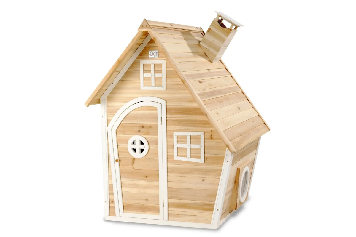 Створіть затишний простір для дитячих ігор з дерев'яним будиночком EXIT Fantasia 100! Натуральний дизайн і продумані деталі, такі як димар, похилі перила та грайливі форми рам, роблять його справжньою мрією для малюків. Компактний і стійкий, він ідеально підходить навіть для невеликої ділянки.