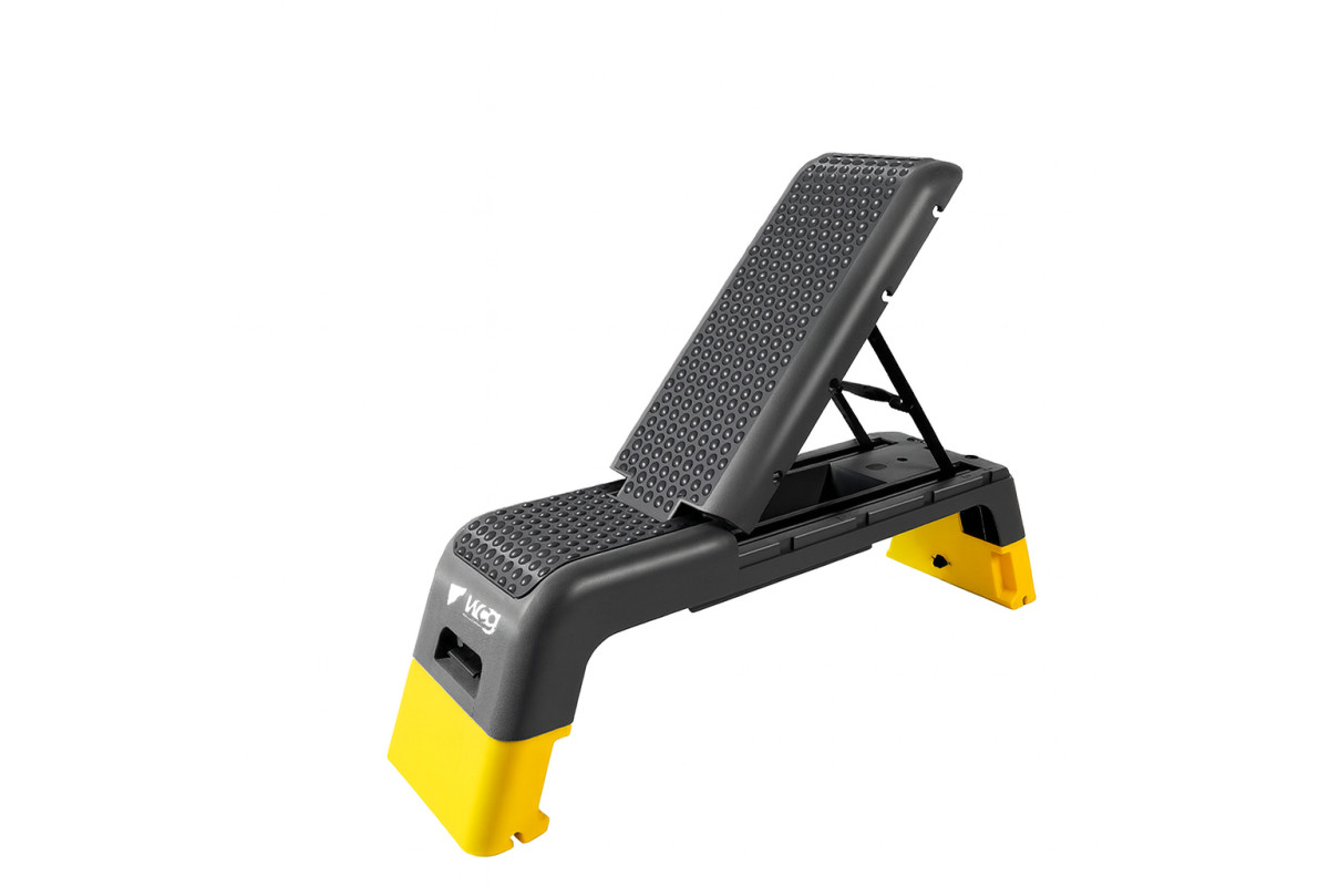 Степ-платформа з лавкою для тренувань WCG Pro 2в1 | Регульована спинка, еспандери в комплекті Універсальне рішення для фітнесу та силових тренувань Багатофункціональний тренажер WCG Pro поєднує в собі степ-платформу і лаву для жиму — ідеальний варіант для домашніх тренувань, фітнес-студій або персональних тренерів. Один пристрій відкриває десятки варіантів для занять: від кардіо та аеробіки до силових вправ і роботи з еспандерами. 2 рівні висоти для кардіо-тренувань Використовуйте WCG Pro як класичну степ-платформу з двома рівнями висоти — 20 або 36 см. Це дозволяє легко адаптувати інтенсивність навантаження під ваш рівень підготовки. Платформа має широку протиковзку поверхню, що забезпечує стійкість навіть під час інтенсивних рухів. Повноцінна лава для силових вправ Завдяки регульованій спинці, тренажер швидко перетворюється на фітнес-лаву. Ви можете змінювати кут нахилу спинки (3 положення) та виконувати вправи з гантелями, стрічками, фітнес-резинками чи еспандерами. Максимальне навантаження – 180 кг — тренажер підходить навіть для досвідчених користувачів. Зручність та зберігання аксесуарів Модель оснащена внутрішнім відсіком для зберігання: скакалок, еспандерів, стрічок тощо. У комплекті вже є два еспандери з ручками, що дозволяє почати тренування одразу, без потреби в додатковому обладнанні. WCG Pro легко розкладається, займає мінімум місця й ідеально підходить для невеликих просторів. Переваги WCG Pro: 2в1: степ-платформа + фітнес-лава Регульована спинка (3 рівні нахилу) Протиковзке покриття платформи Надійна та стійка конструкція Вбудований контейнер для аксесуарів Еспандери в комплекті Максимальне навантаження – 180 кг Підходить для дому та студій Рекомендовані вправи: Аеробіка та степ-кардіо Присідання, випади, планки Жим гантелей під кутом Вправи на прес Тренування з еспандерами Технічні характеристики: Розміри платформи: 110,5 × 35 см Висота платформи: 20 / 36 см Висота зі спинкою: 48 / 70 / 82 см Висота лави з підставками: 64 / 86 / 98 см Розмір протиковзкої поверхні: 23 × 102 см Матеріали: поліпропілен (PP), термопластичний еластомер (TPE) Вага: 12,5 кг Максимальне навантаження: 180 кг Відсік для аксесуарів: так Еспандери в комплекті: так Гарантія: 24 місяці (домашнє використання), 12 місяців (комерційне) Комплектація: Степ-платформа з лавкою 2 еспандери з ручками Інструкція з експлуатації Упаковка