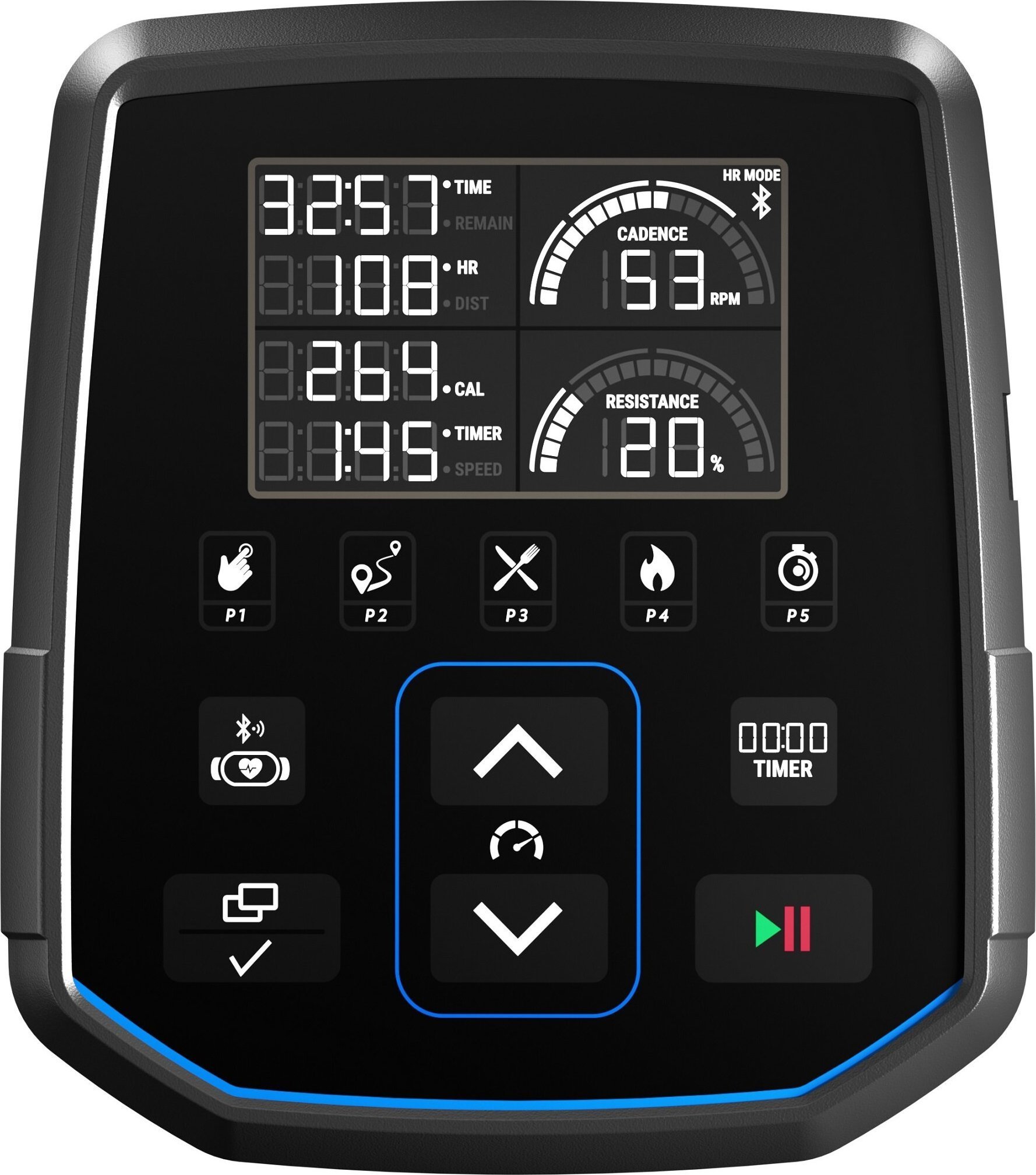 Тренажер оснащений комп'ютером, який підраховує і відображає всі найважливіші параметри тренування. На ньому можна відстежувати свій час, швидкість, дистанцію, спалені калорії та пульс.