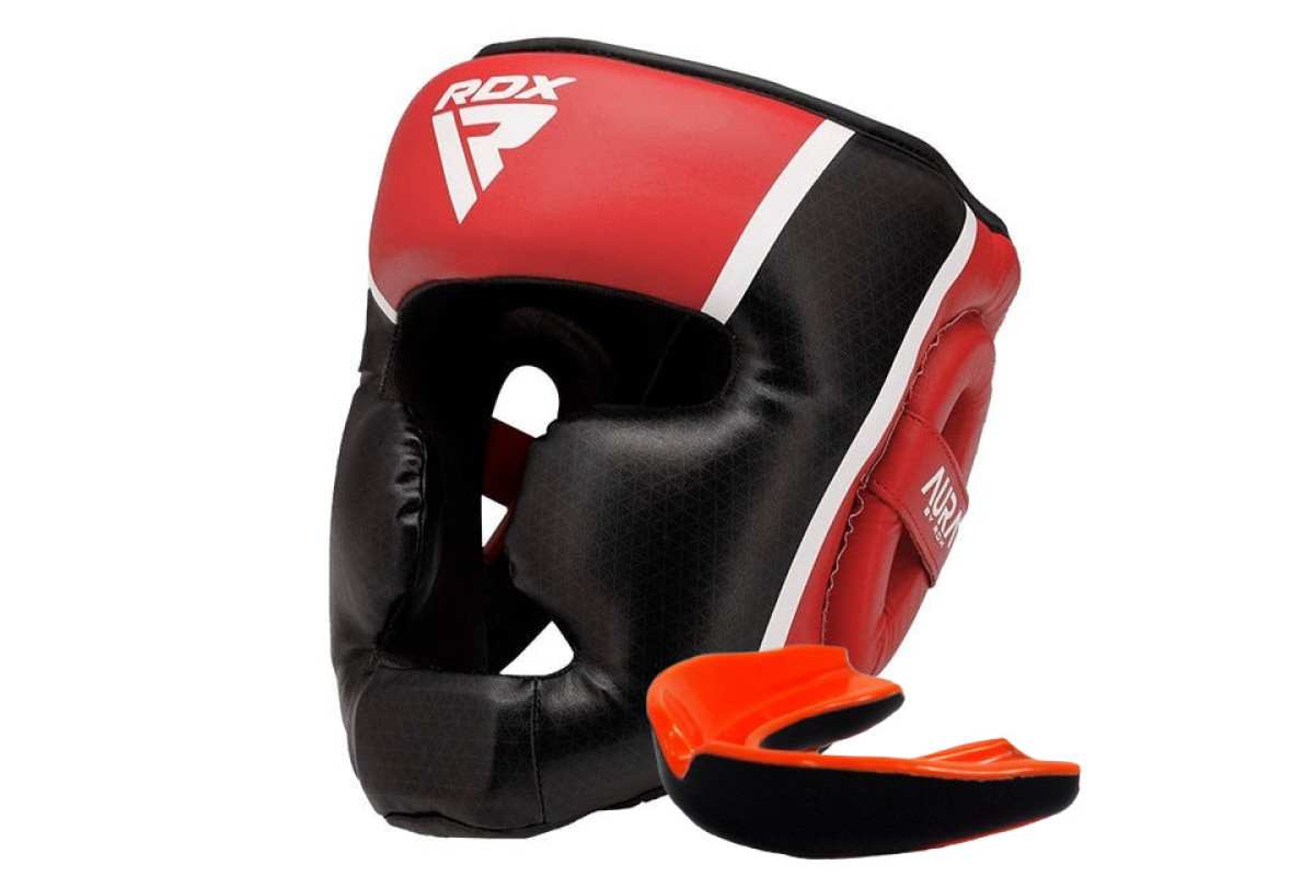 Шолом боксерський з капою RDX AURA PLUS T-17 розмір S, чорно-червоний