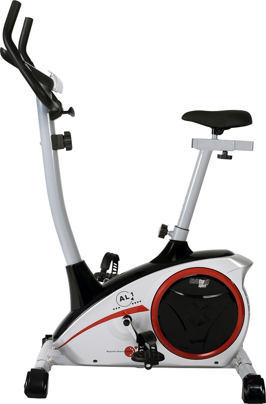 Велотренажер Christopeit AL1 оснащений зносостійкою магнітною гальмівною системою вагою близько 9 кг і тихою приводною ремінною передачею. Опір можна регулювати в 8 ступенях за допомогою механічного регулювання. Зручний для користувача великий РК-дисплей дозволяє комфортно зчитувати відображувані значення і простий в експлуатації. Датчики пульсу вбудовані в кермо і можуть використовуватися для контролю пульсу під час тренування. У велотренажері кермо і сідло мають регулювання нахилу, а сідло можна регулювати по вертикалі, завдяки чому можна підібрати висоту відповідно до свого зросту. Рекомендується для людей зростом 160-185 см.
