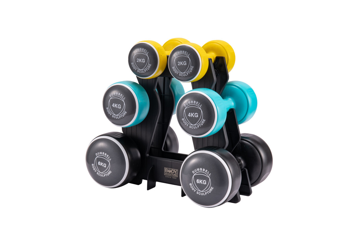 Набір вінілових гантелей Body Sculpture BW 108DT - це ідеальне поєднання практичності, функціональності та сучасного дизайну. Комплект призначений для тренувань як у домашніх умовах, так і в залах або фітнес-клубах. До набору входять шість гантелей різної ваги: по дві на 2 кг, 4 кг і 6 кг. Такий розподіл дозволяє поступово нарощувати інтенсивність навантаження відповідно до індивідуального рівня фізичної підготовки, а також ефективно працювати над різними групами м'язів.