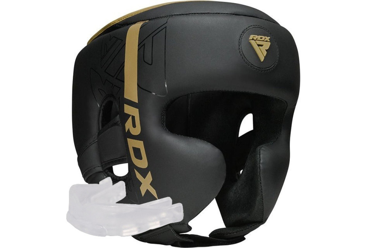 Шолом боксерський з капою RDX F6 KARA Matte розмір XL, чорно-золотистий