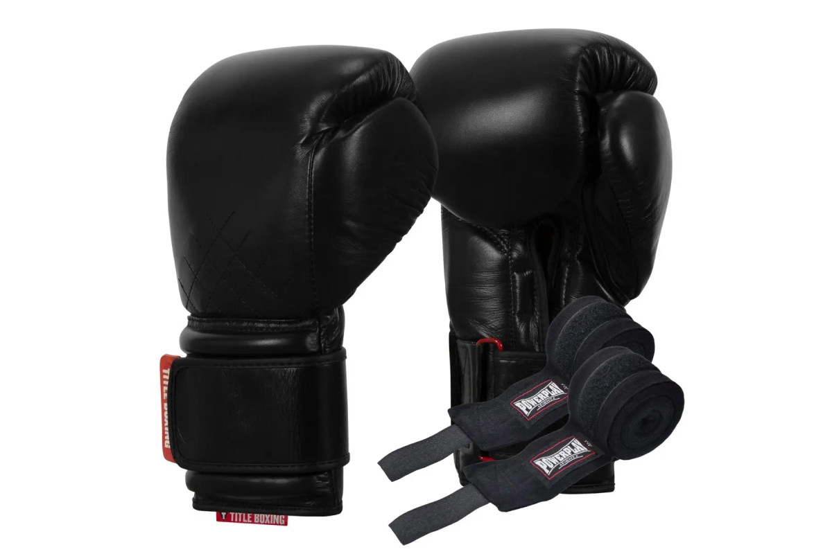 Рукавички боксерські з бинтами TITLE Ko-Vert 16 унцій, чорні