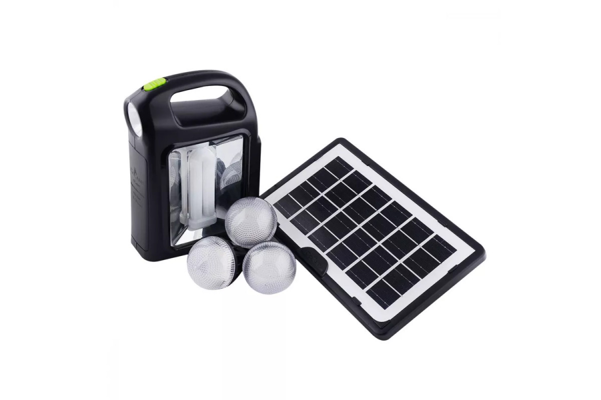 - комплект: зарядний кабель 5 в 1, ліхтар, 3 лампи, сонячна панель.