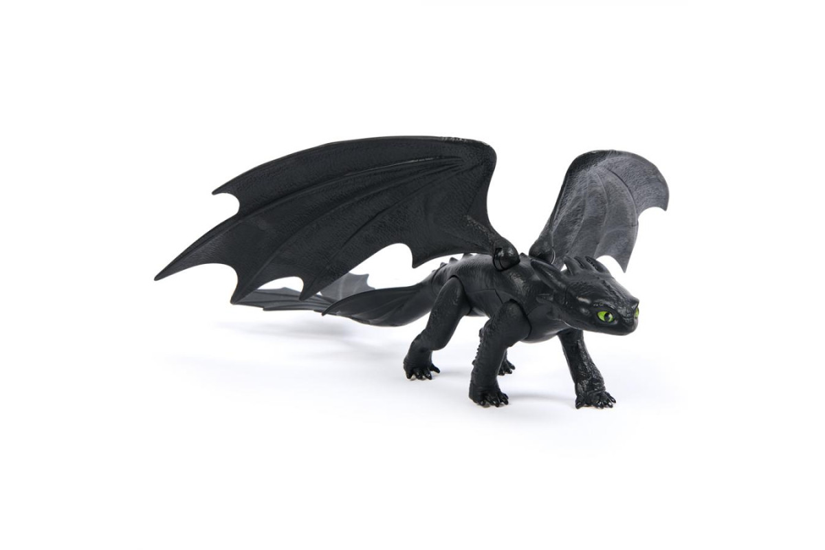 Фігурка від Spin Master має автентичний вигляд, натхненний образом Беззубика з фільму: гладенькі чорні луски, впізнавані зелені очі та потужні крила. Завдяки рухомим лапам і крилам діти можуть відтворювати улюблені сцени з мультфільму або створювати власні історії про дружбу між вікінгами та драконами. Після простої збірки - приєднання крил і хвоста - Беззубик повністю готовий до польоту!