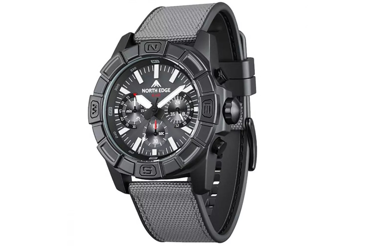 NORTH EDGE Blaze – захищений, точний, автономний. Функціональність. Модель оснащено класичним функціоналом для точного вимірювання часу — хронограф, 24-годинна шкала, малий секундний циферблат. Сонячна батарея продовжує роботу пристрою без підзарядки, а великий екран спрощує зчитування даних у русі. Годинник зручно використовувати як у місті, так і під час трекінгу або роботи на відкритому повітрі.