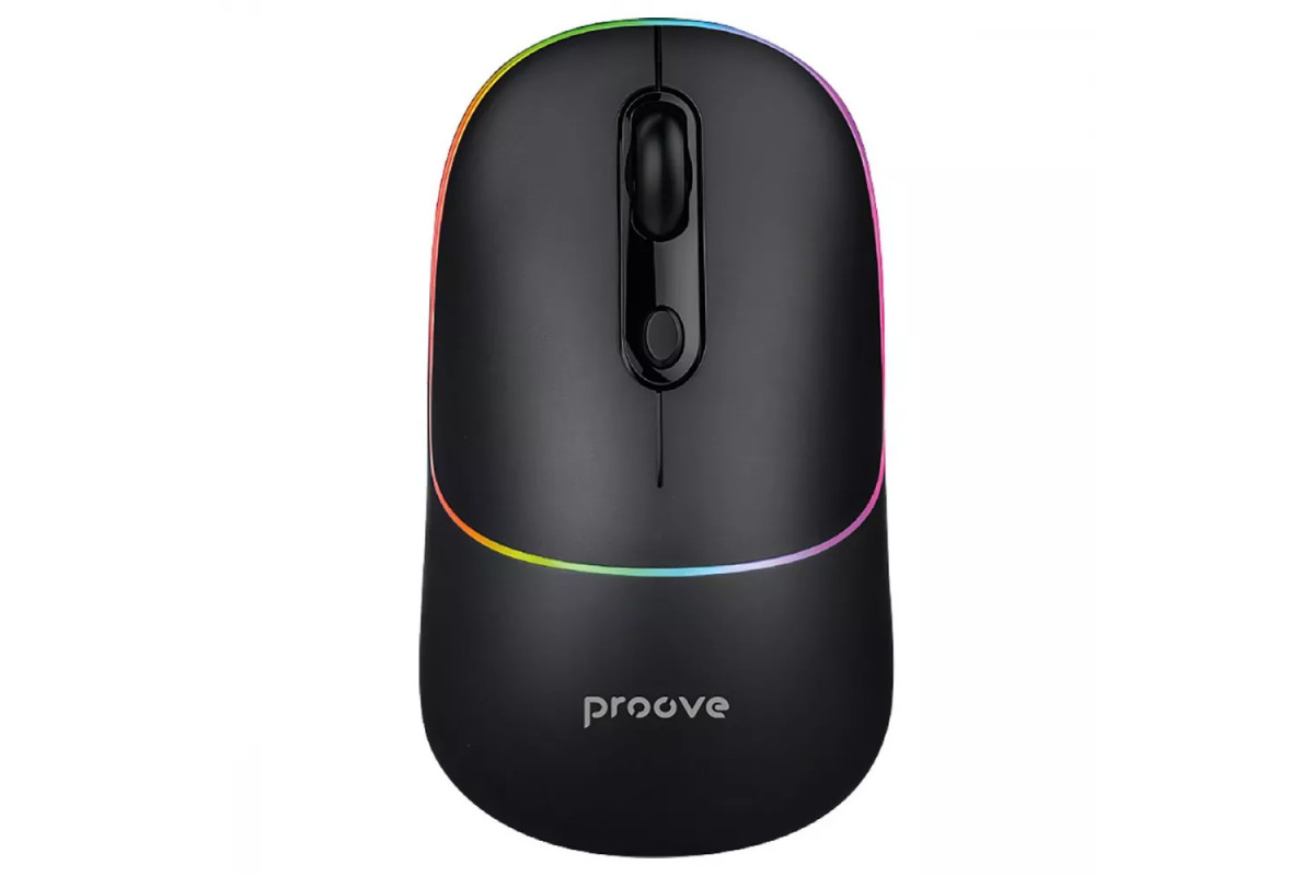 Бездротова миша Proove Blink – стильний офісний комфорт. Дизайн. Proove Blink поєднує мінімалістичний стиль із яскравим RGB-підсвічуванням, яке додає сучасності. Компактні розміри і легкість роблять мишу зручною для щоденного використання в офісі чи вдома.