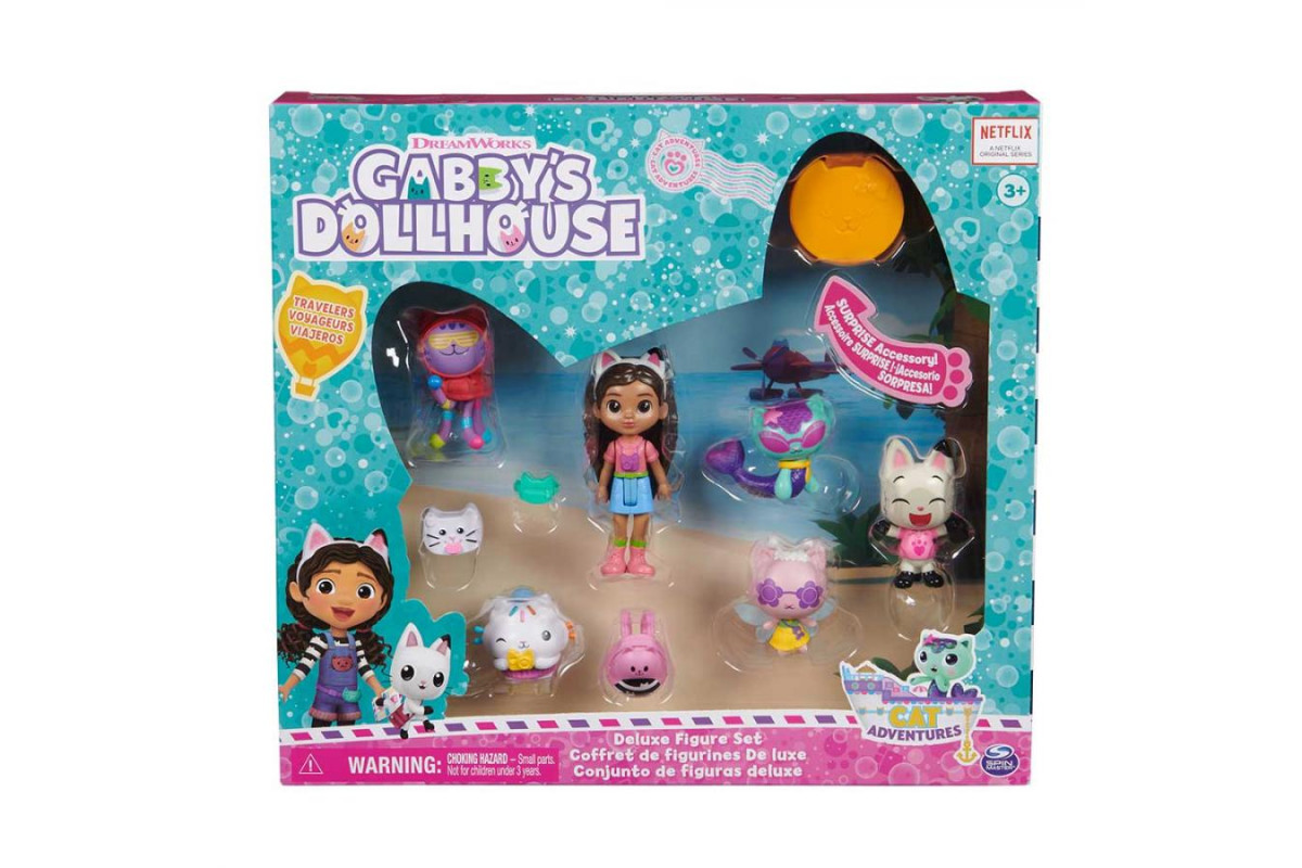 У комплект входить фігурка Габбі та шість колекційних кошенят, кожне з яких має свій унікальний образ і характер. Додатковий аксесуар-сюрприз прихований у коробочці Лялькової доставки, яку можна розпакувати так само, як це робить Габбі у мультсеріалі. Деталізовані фігурки виглядають надзвичайно реалістично й допомагають повністю зануритися у котосвіт серіалу.