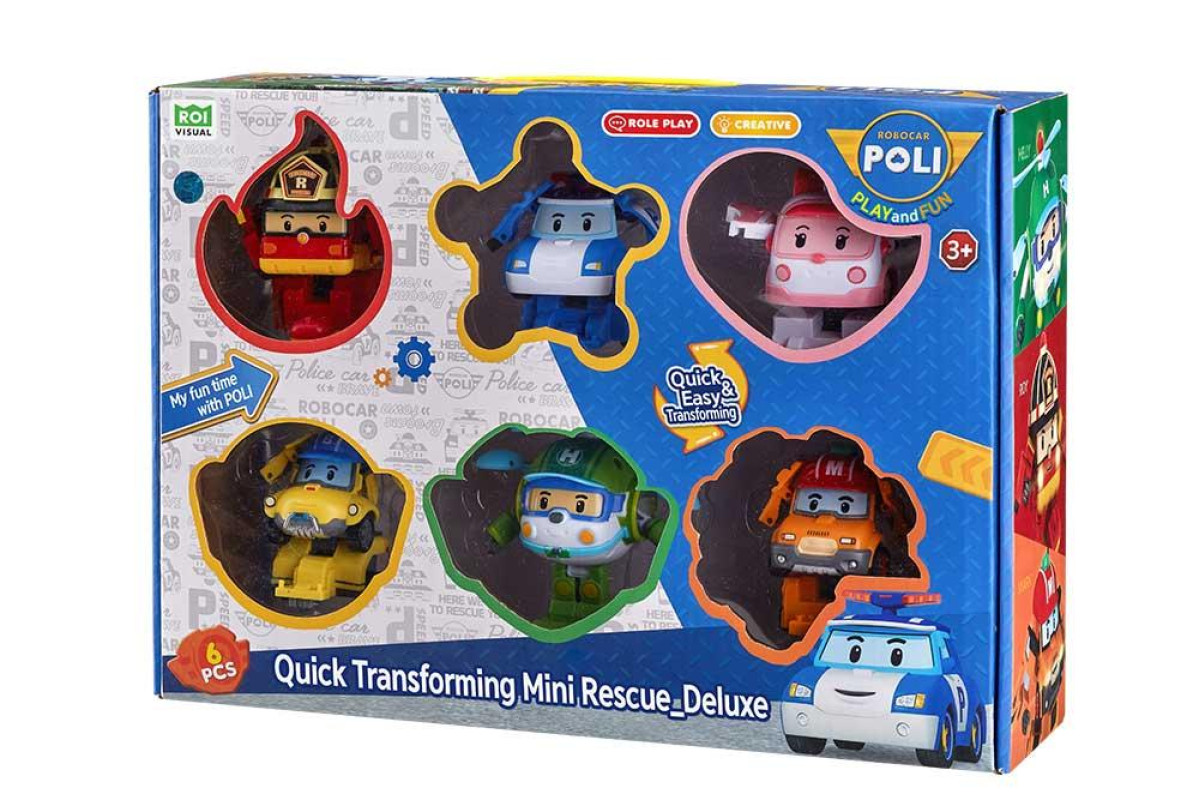 Ігровий набір "Міні рятівники-трансформери делюкс" об’єднує шість популярних персонажів з улюбленого мультфільму Robocar POLI. У цьому комплекті зібрані всі головні герої, які готові вирушати на нові захопливі пригоди. Такий набір стане чудовим подарунком для дитини, що любить сюжетні ігри та світ відважних рятівників.