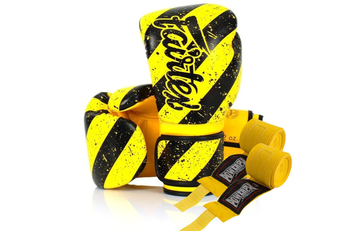Рукавички боксерські з бинтами Fairtex BGV14Y 14 унцій, жовто-чорні