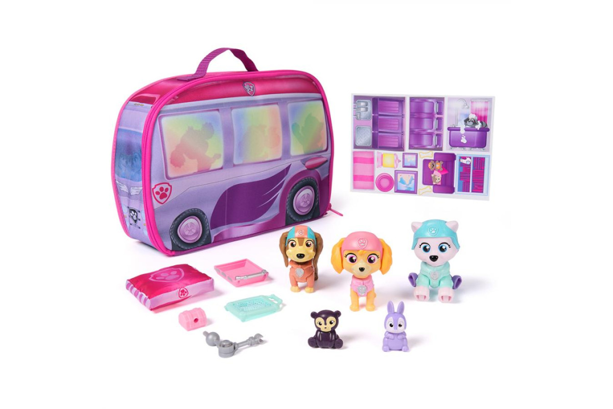 У комплекті є рухомі фігурки цуценят із кумедними лапками й голівками, а також корисні аксесуари для рятувальних місій - м’яка подушка для приземлення, роботизована рука та рюкзак із ношами й сіткою, що підходить для всіх трьох героїв. Коли гра закінчується, кемпер можна скласти назад, і він перетворюється на зручну коробку для зберігання.