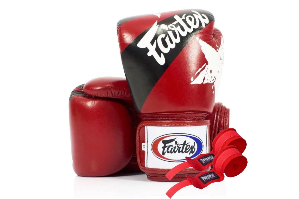 Рукавички боксерські з бинтами Fairtex BGV1 Nation Print 10 унцій, червоні