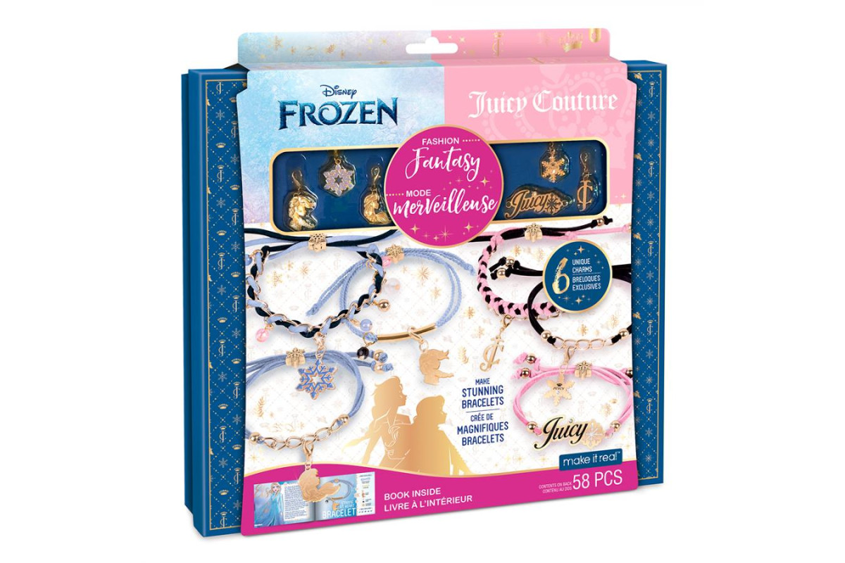 Набір для створення шарм-браслетів Make it Real "Крижане серце Disney and Juicy Couture" об'єднує магію улюблених героїнь Frozen та стильні підвіски Juicy Couture. Діти можуть створювати 6 унікальних браслетів, комбінуючи підвіски та намистини, експериментуючи з кольорами і формами, щоб виготовити прикраси, які підкреслять їхню індивідуальність та стиль.