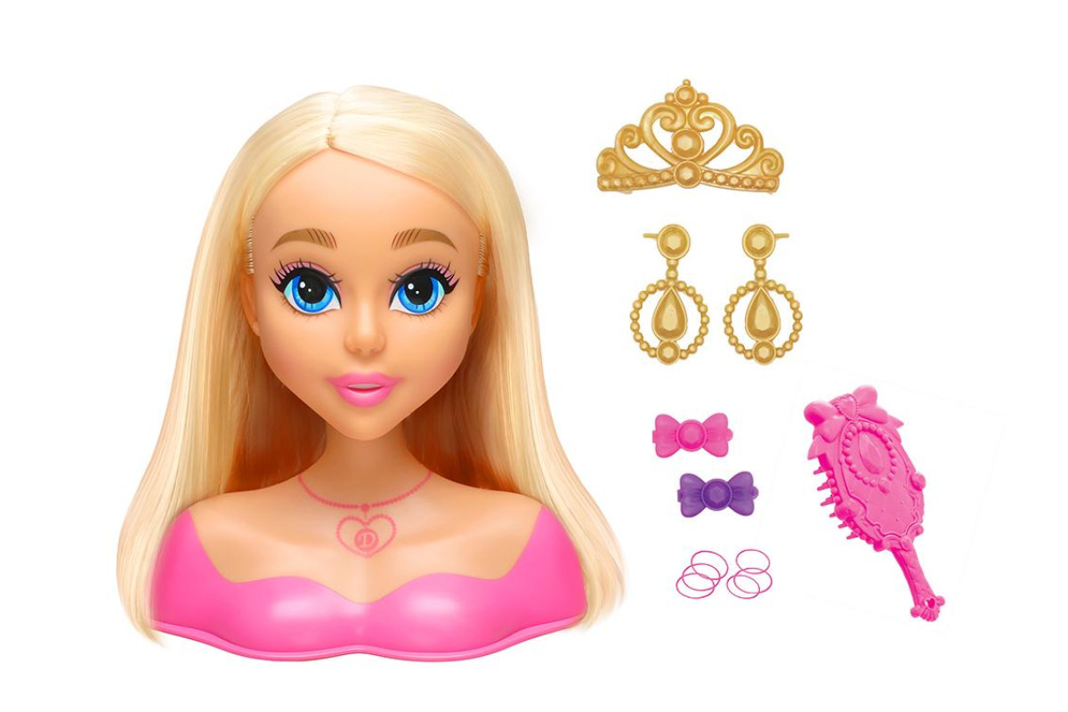 У комплект входить безліч стильних аксесуарів: золотиста діадема, сережки, бантики, шість різнокольорових резинок і рожевий гребінець. Завдяки цим елементам можна створювати яскраві, святкові або казкові зачіски, експериментуючи з кольорами й формами. Манекен Dreameez стане ідеальним подарунком для маленьких стилісток і чудовим доповненням до дитячої колекції іграшок для творчої гри.