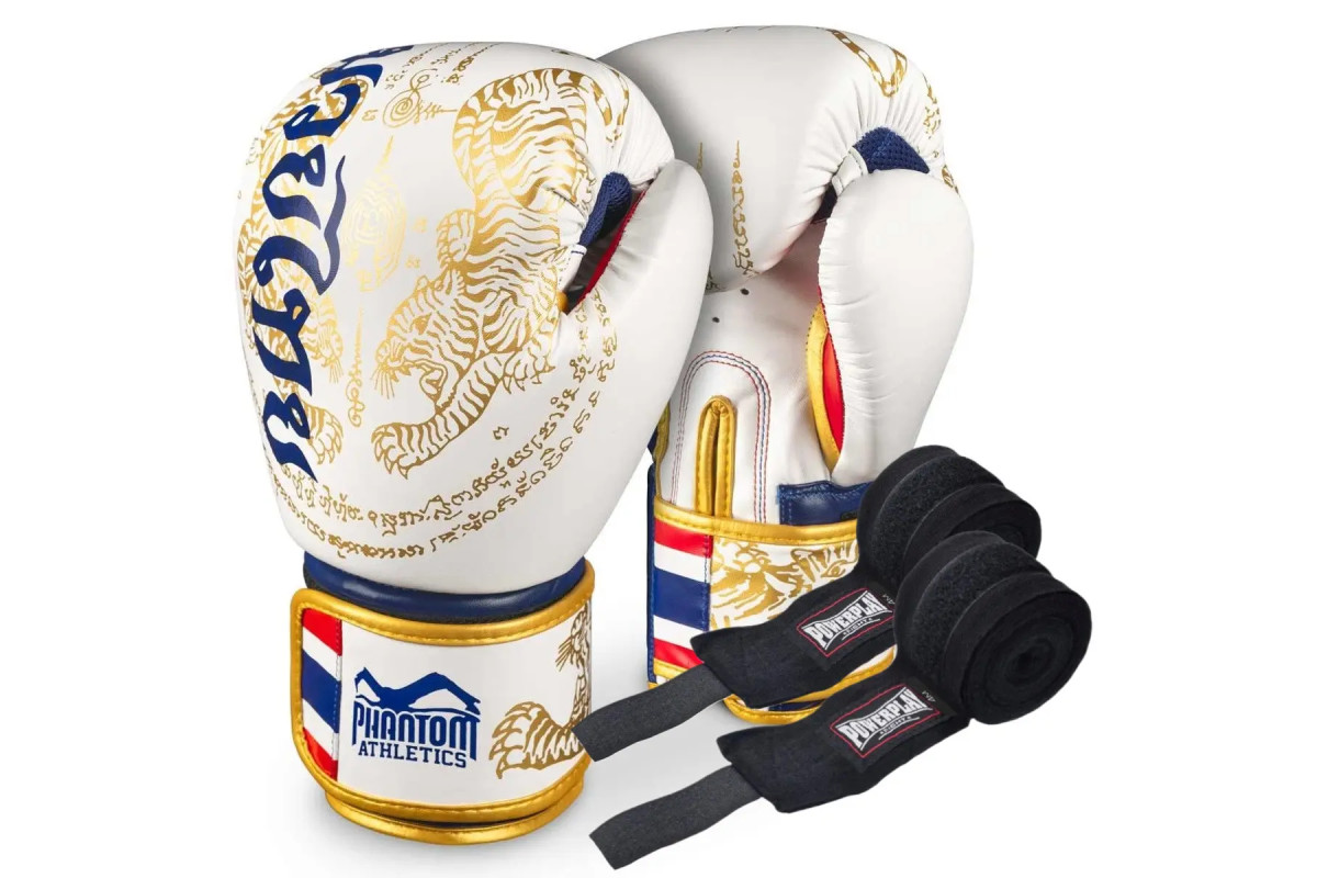 Боксерські рукавички Phantom Muay Thai – розроблені для спортсменів, які шукають прості, але надзвичайно професійні рукавички. Рукавички виготовлені із поліуретану, вони чудово витримають навантаження і навіть при тривалих тренуваннях вони збережуть свій зовнішній вигляд і не втратять функціональність. Внутрішнє наповнення поглинає енергію ударів, рівномірно розподіляє навантаження по поверхні, тим самим мінімізує ризик травмування. Крій рукавичок, внутрішнє наповнення, манжет – все це забезпечить анатомічне положення рук та комфорт під час тренувань.