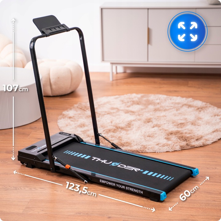 Шукаєте компактне і водночас сучасне обладнання для домашніх тренувань? Бігова доріжка THUNDER VIVA – ідеальне рішення, яке поєднує в собі зручність, функціональність і сучасні технології та гарантує ефективні тренування щодня!