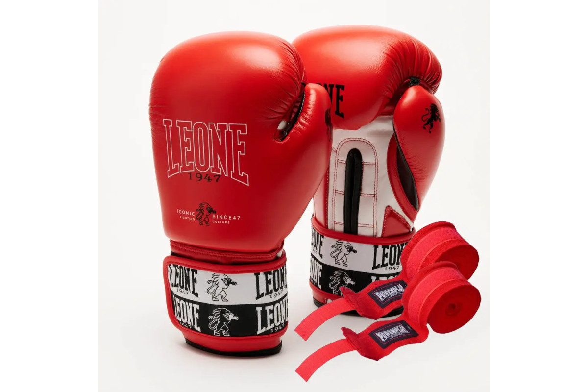 Рукавички боксерські з бинтами Leone GN208 ICONIC розмір 12 унцій, червоні