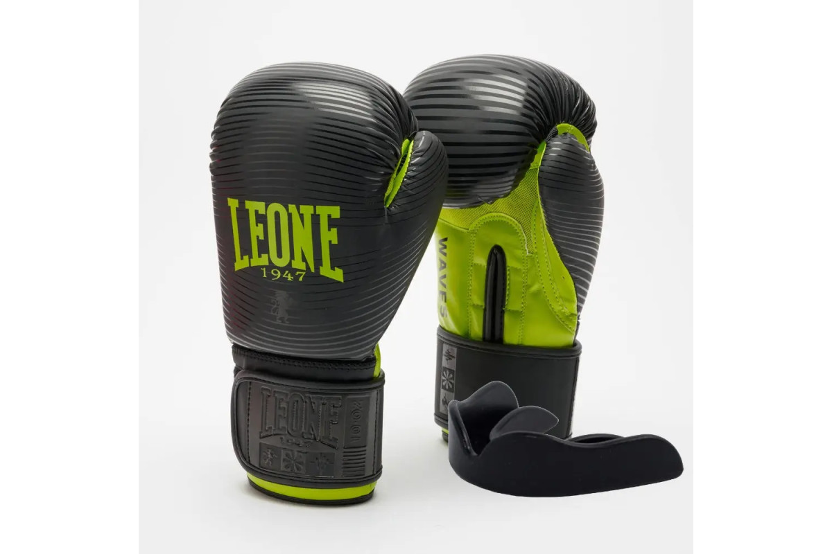 Рукавички боксерські з капою Leone GN313 WAVES розмір 16 унцій, чорно-зелені