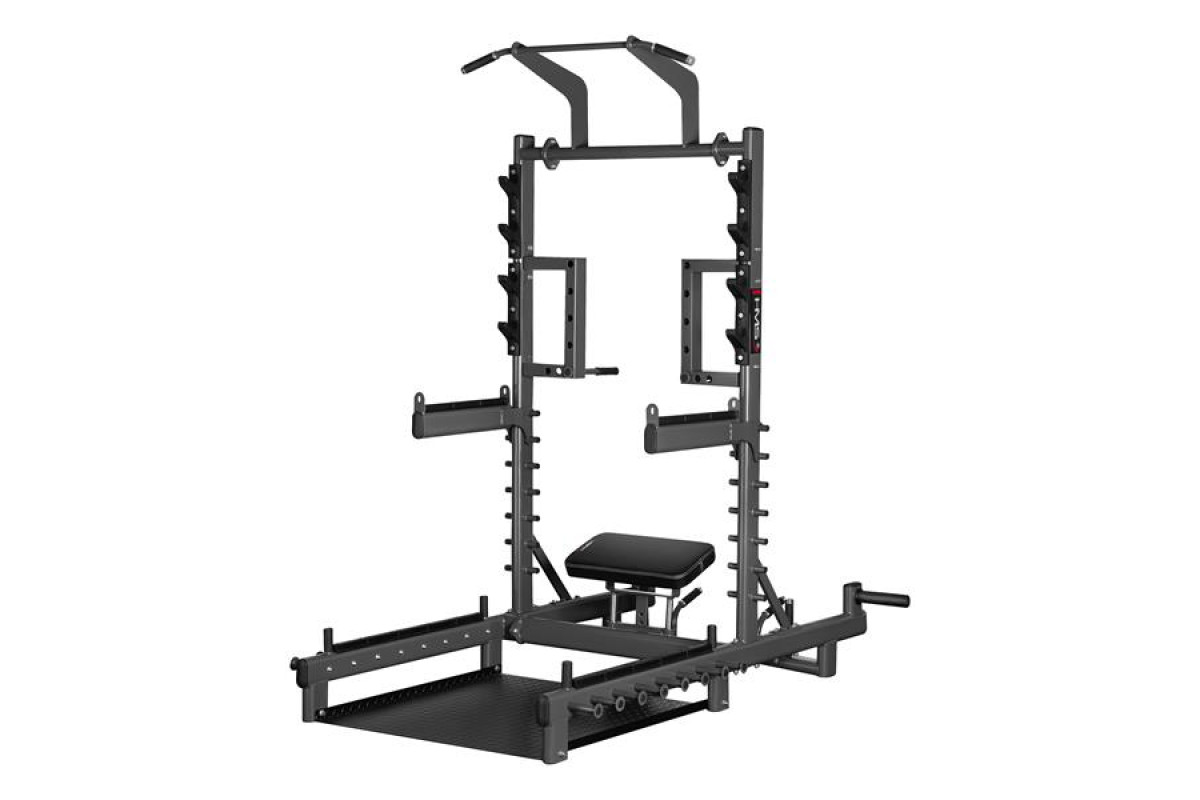 Силова станція HMS SMP01 — це універсальний тренувальний центр, обладнаний штангою для підтягувань, ручками для дипів, грифом, опорами безпеки та штирями для зберігання обтяжень. Завдяки продуманій конструкції та широким можливостям регулювання, SMP01 ідеально підходить як для домашнього тренажерного залу, так і для професійних тренувальних просторів. SMP01 оснащений спинкою з регулюванням кута нахилу та висоти на чотирьох рівнях. Таке рішення дозволяє адаптувати обладнання до різних вправ, таких як виштовхування стегон або відведення ноги назад, забезпечуючи комфорт та максимальне залучення відповідних м'язових груп.