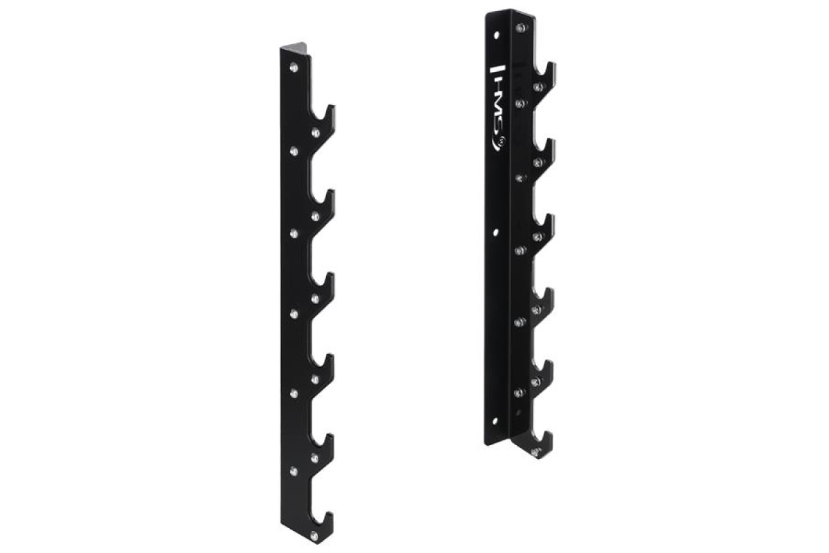 Тримач настінний для грифів HMS STR46 — це кронштейн, що складається з двох незалежних колон, які можна встановити на будь-яку ширину, підлаштовуючи його під різні типи грифів і штанги. Завдяки горизонтальному зберіганню до 6 грифів і максимальному навантаженню 180 кг, це ідеальне рішення як для комерційних тренажерних залів, так і для домашніх тренувальних зон.