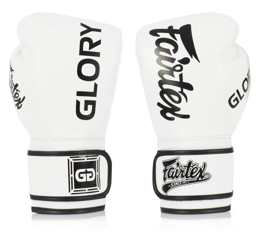 Модель оснащена ремінцем на липучці для надійної фіксації зап’ястя та фіксатором великого пальця, який дозволяє правильно стискати кулак і забезпечує максимальний захист під час спарингів і тренувань. Унікальні принти GLORY на одній рукавичці та Fairtex на іншій підкреслюють ексклюзивність цієї колекційної моделі.