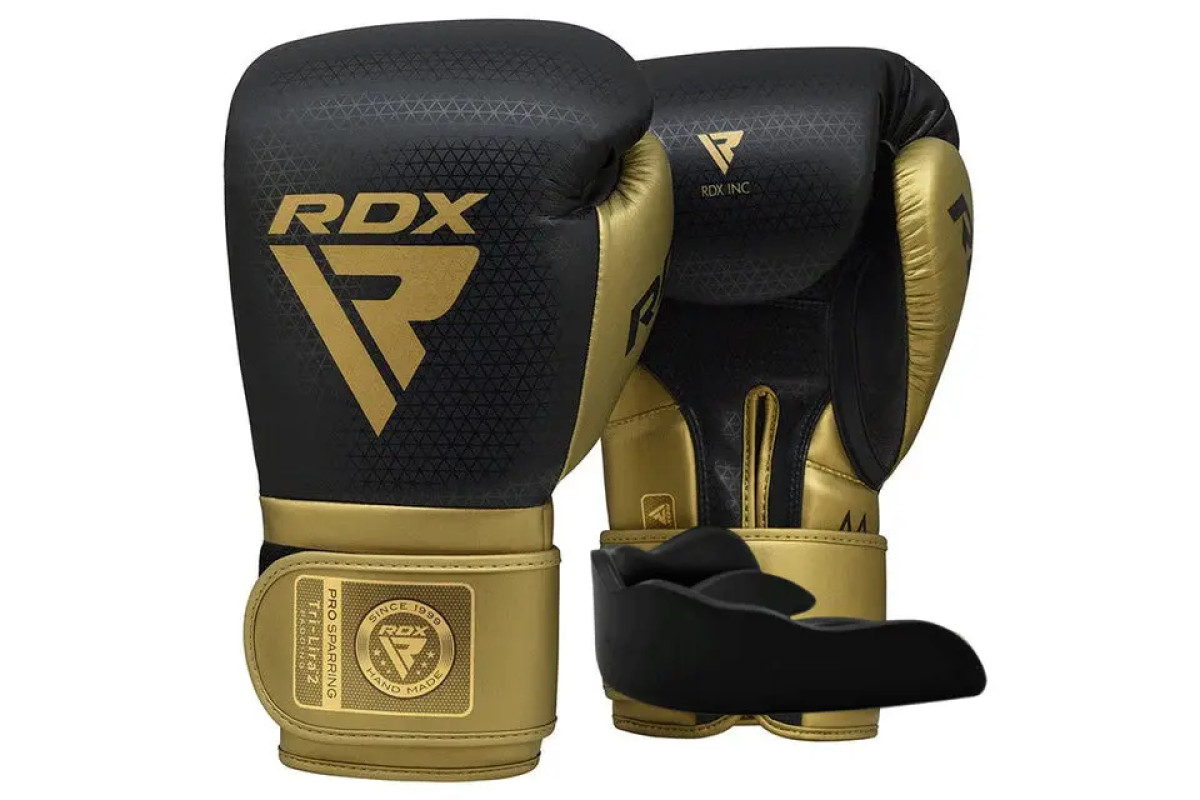 Рукавички боксерські з капою RDX MARK SPARRING PRO TRI LIRA 2 розмір 14 унцій, чорно-золотисті