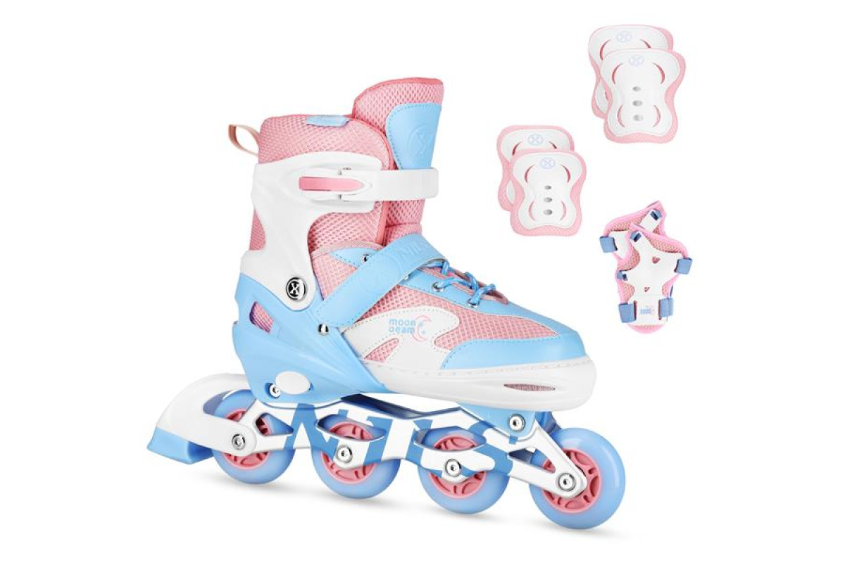 Роликові ковзани з комплектом захисту NILS EXTREME Moonbeam NA0189 розмір M 35-38, блакитно-рожеві
