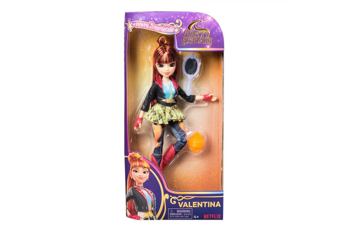 Лялька Валентина переносить у світ Академії Єдинорогів та дарує можливість зануритися в атмосферу пригод. Її образ створений за мотивами популярного мультфільму та передає темперамент відважної й доброзичливої героїні. Завдяки деталізованому виконанню діти легко впізнають у ній улюблену персонажку та зможуть відтворювати добре знайомі історії або вигадувати власні.