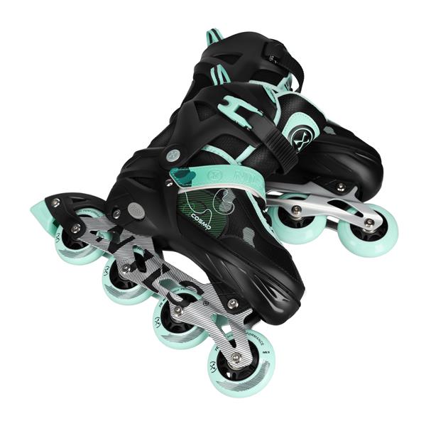 Черевик виготовлений із міцного та водночас еластичного поліетилену (PE), який добре витримує навантаження і забезпечує зручну посадку стопи. Алюмінієва рама відповідає за стабільність, надійність і контроль під час катання, що особливо важливо для початківців. Поліуретанові колеса діаметром 70 мм забезпечують чудове зчеплення з поверхнею та відзначаються високою стійкістю до стирання, що гарантує довгий термін служби. Плавне та тихе ковзання забезпечують підшипники ABEC-7, які додають рухам легкості й впевненості.