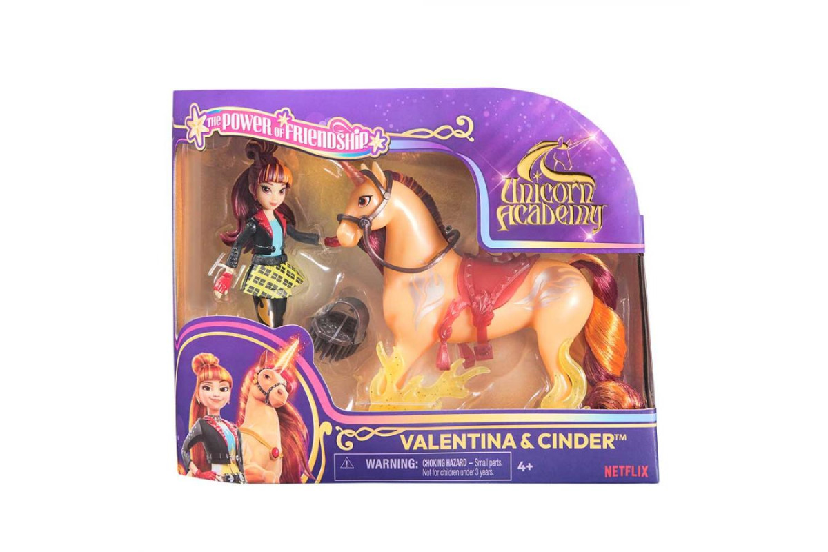 Ігровий набір "Валентина та Вуглик" створений за мотивами серіалу "Академія єдинорогів" і передає атмосферу пригод, дружби та магії. Дитина зможе відтворювати улюблені сцени або вигадувати власні історії, адже дизайн ляльки й єдинорога максимально наближений до персонажів з екрана. Продумана стилістика та яскраві елементи роблять гру захопливою й видовищною.