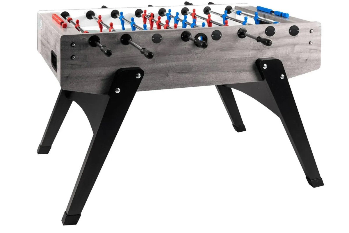 Настільний футбол Garlando G-2000 Grey Oak Telescopic (G2000GRRLVS) привертає увагу своєю особливою формою, яка нагадує гондолу з похилими ніжками. Стіл виконаний в кольорі Сірий дуб, одному із самих модних відтінків меблів за останні роки. Модель виготовлена безпосередньо в Італії з високоякісних матеріалів, що забезпечують довговічність і задоволення від гри, з урахуванням конкретних вимог, яким повинен відповідати футбольний стіл. Цей стіл характеризується надійністю та стійкістю, що робить його придатним для гри в будь-якому місці: від дому до офісу та бару. Настільний футбол Garlando G-2000 Grey Oak Telescopic (G2000GRRLVS) відповідає європейським стандартам безпеки EN 71-1, 71-2, 71-3 та 71-9.
